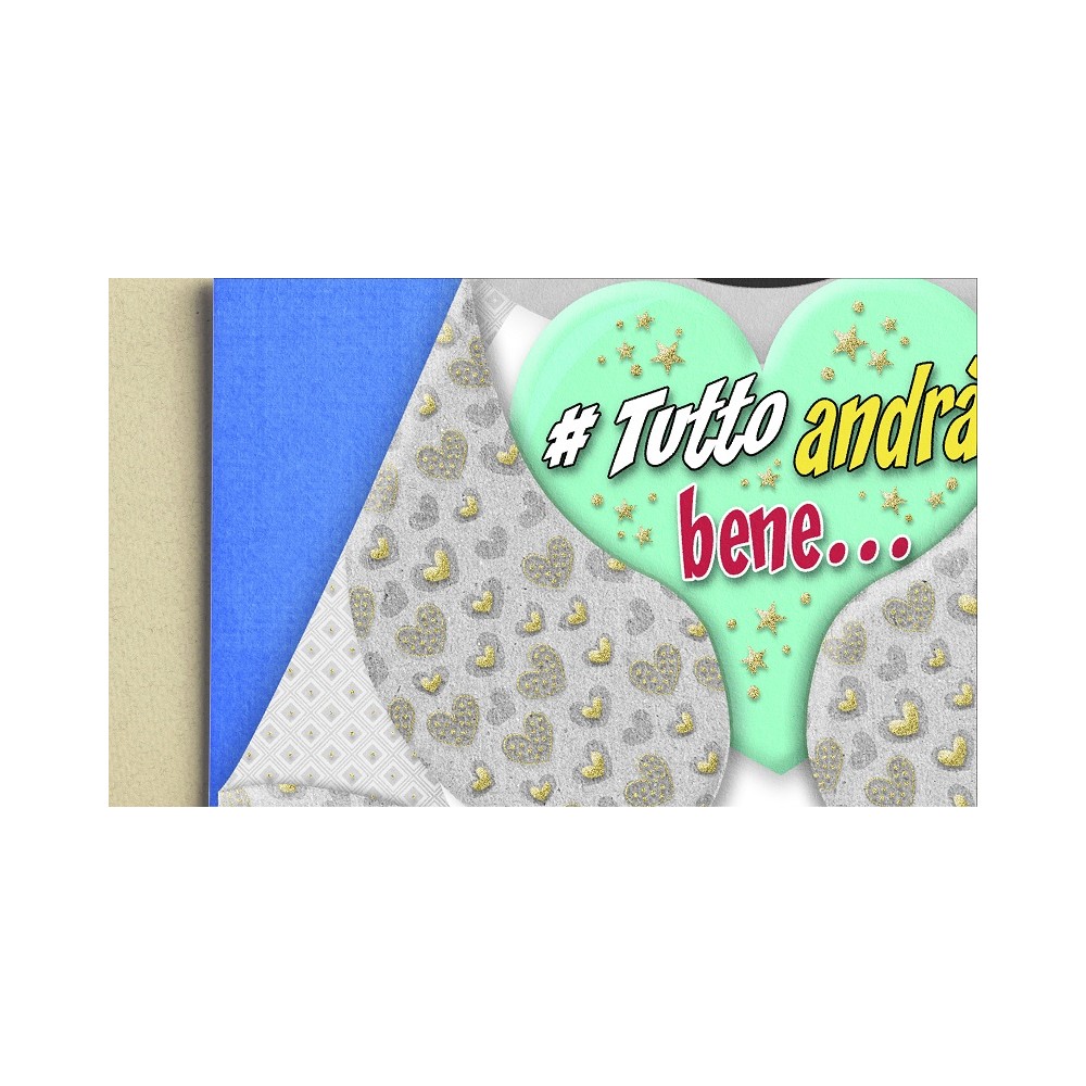 Ideale accessorio di cartoleria confezionato singolarmente da utilizzare nel giorno del Compleanno di un famigliare, un amico o un collega, il prodotto, in cartoncino biodegradabile e completamente Made in Italy, viene presentato con una stampa serigrafica in rilievo con scritto "#tutto andrà bene, Tanti Auguri" e all'interno del biglietto, sarà perfetto personalizzare il tutto andando a scrivere il nome dei festeggiati di fianco al messaggio di auguri "Brindiamo, Divertiamoci..e Tanti Auguri!". Ideale oggetto prodotto artigianalmente da abbinare eventualmente ad un regalo o a un mazzo di fiori.