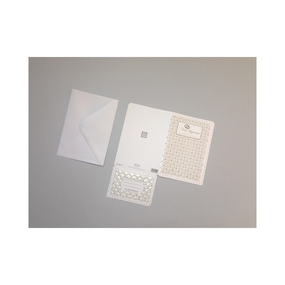 Ideale accessorio di cartoleria confezionato singolarmente da utilizzare nel giorno del Matrimonio di un famigliare, un amico o un collega, il prodotto, in cartoncino biodegradabile e completamente Made in Italy, viene presentato come Biglietto Portasoldi con la stampa "Felice Matrimonio"personalizzabile andando a scrivere il nome dei festeggiati. Ideale oggetto prodotto artigianalmente da abbinare eventualmente ad un regalo o a un mazzo di fiori.