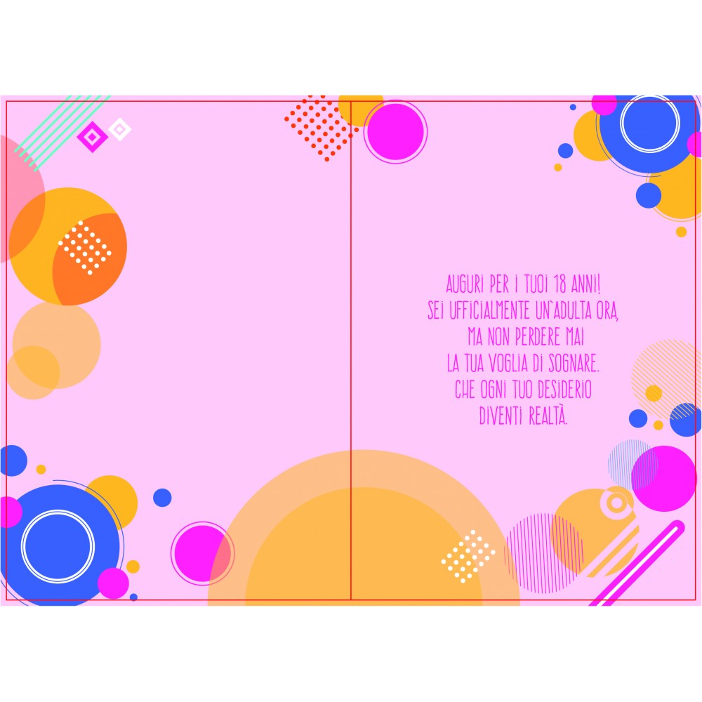 Ideale accessorio di cartoleria confezionato singolarmente. Un biglietto d’auguri vivace e brillante, perfetto per celebrare i 18 anni con allegria e stile! Con colori accattivanti, dettagli glamour e un tocco di festa, rappresenta tutta l’emozione di questo nuovo inizio. Ideale per una giovane donna pronta a vivere nuove avventure e inseguire i suoi sogni!