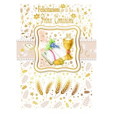 Biglietto Prima Comunione JHS"Felicitazioni" con busta