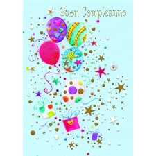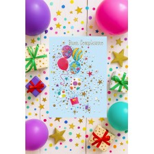Biglietto di auguri allegro e colorato, decorato con tanti palloncini variopinti e la scritta “Buon Compleanno”. Perfetto per creare un’atmosfera di festa e portare un sorriso in ogni compleanno.