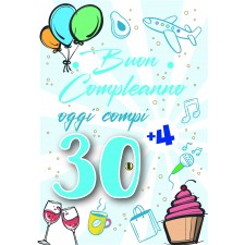 Biglietto "Buon Compleanno" 30 Anni (+4) con busta