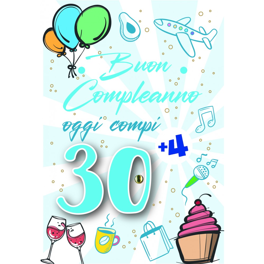 Biglietto Buon Compleanno 30 + 4 Anni (34) con busta