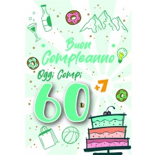 Biglietto "Buon Compleanno" 60 Anni (+7) con busta