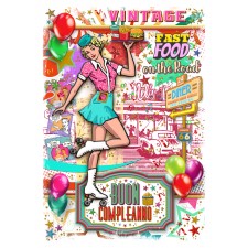Biglietto "Buon Compleanno" VintageFast Food, con busta