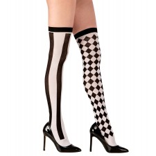 Questo paio di calze coprenti 70 denari con stampa a righe e a quadri è l'accessorio da travestimento sexy ideale per il tuo Carnevale e feste in maschera!