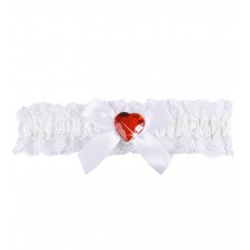 Giarrettiera bianca con gemma a forma di cuore e fiocco