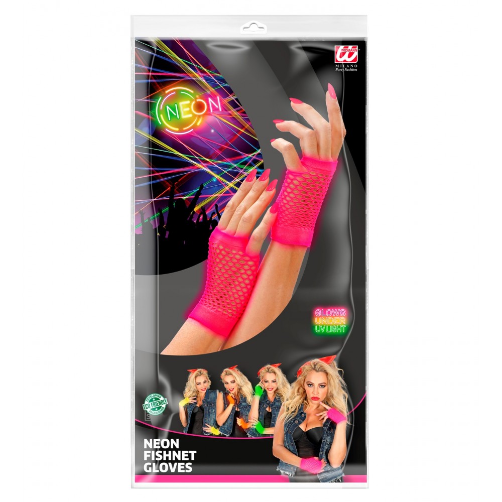 Questi particolari guanti a rete rosa fluorescente senza dita corti sono un validissimo accessorio da travestimento per dare un tocco sexy ai costumi da cantante pop, Madonna, showgirl, cabaret, ragazza anni '80.