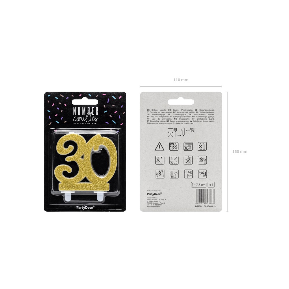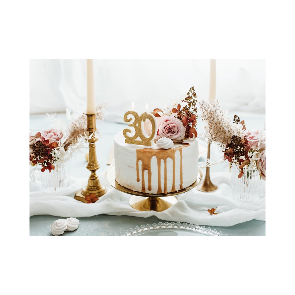 Una candelina per torta sagomata a forma di numero trenta per decorare la torta per la tua occasione.