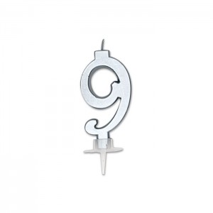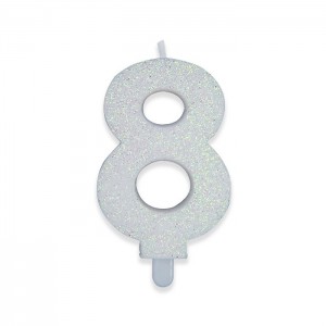 Candelina in Glitter Argento per Decorazione di Torte a Forma di Numero 4. 13cm