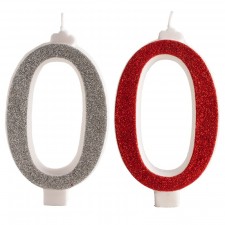 Candelina in Glitter Rosso per Decorazione di Torte a Forma di Numero 0. 13cm