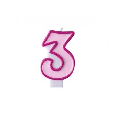 Ottima decorazione per dare un tocco colorato e creativo alla propria torta di compleanno, a forma di numero "3", di colore Rosa, la candela sarà perfetta per la celebrazione di un compleanno o di un anniversario.