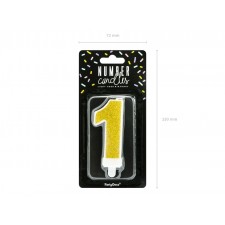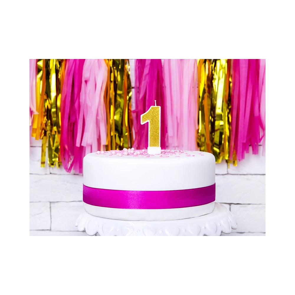 Candelina Torta Numero 1 Uno con Glitter Oro Compleanno Bambino