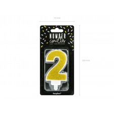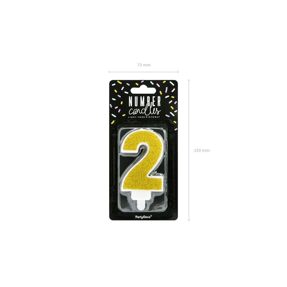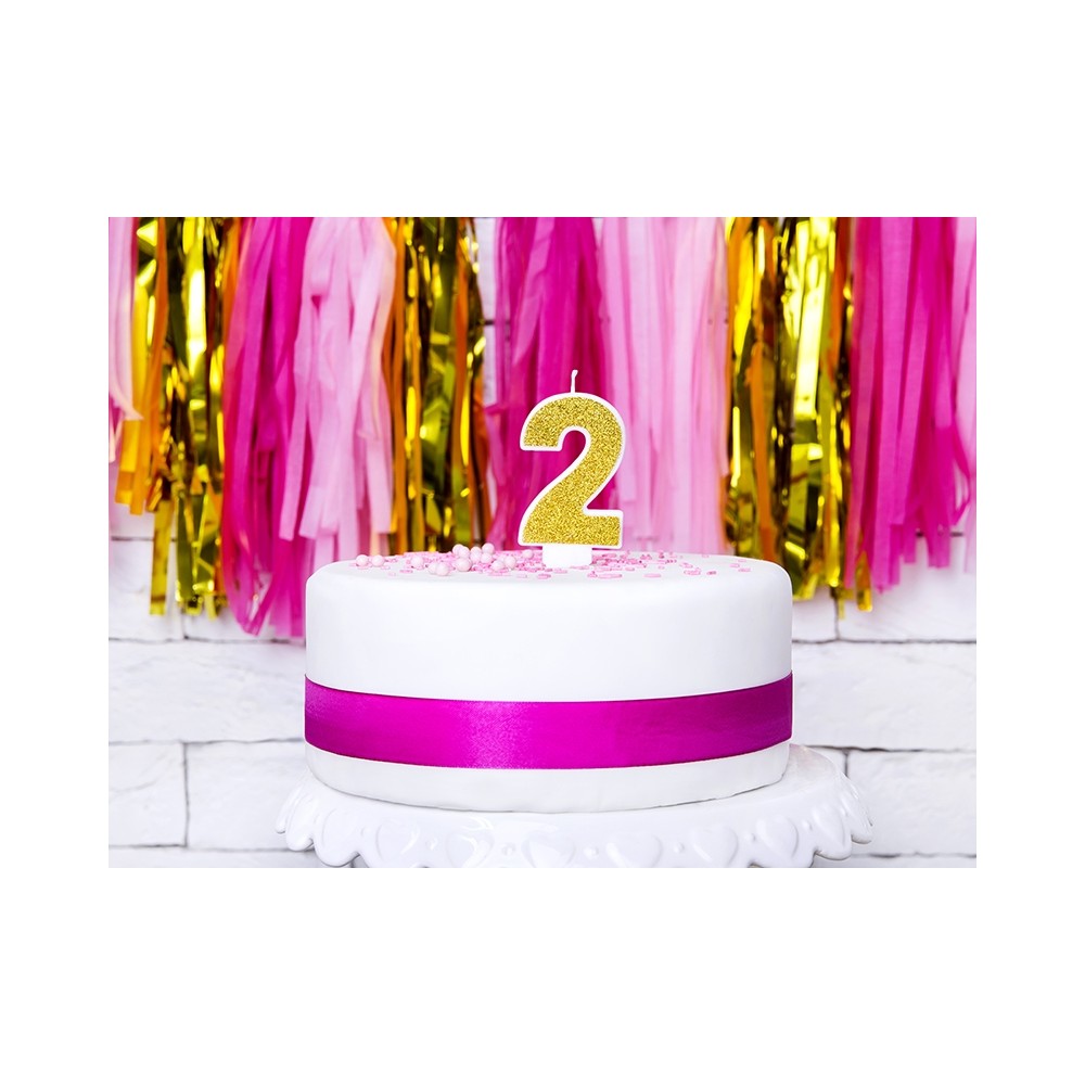 Candelina Torta Numero 2 Due con Glitter Oro Compleanno Bambino