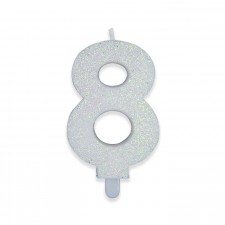 Candelina Sweety Bianco Glitter 9 cm Numero 8