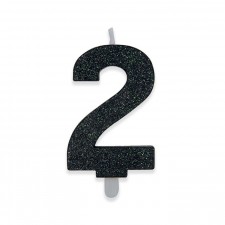 Candelina Sweety Nero Glitter 9 cm Numero 2