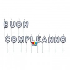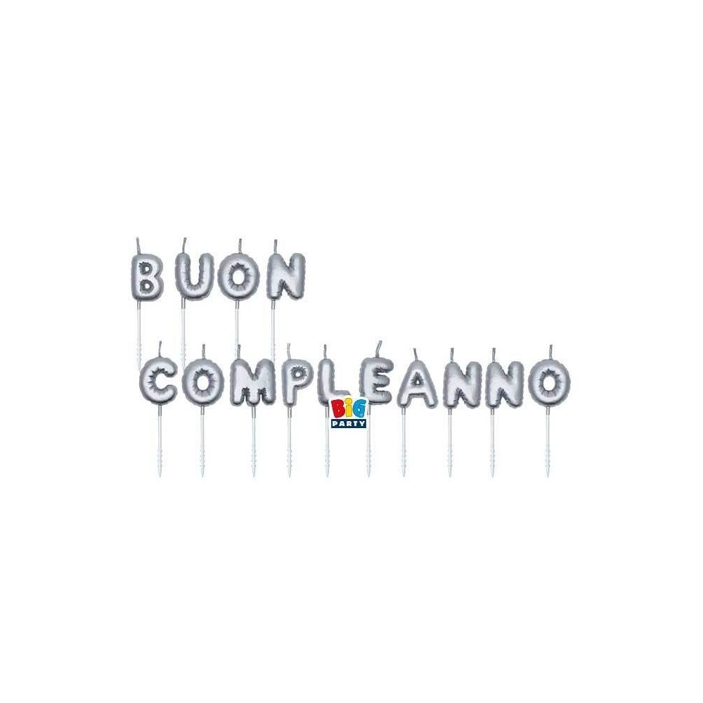 Set Candeline Balloon 7 cm Buon Compleanno Argento Metal