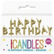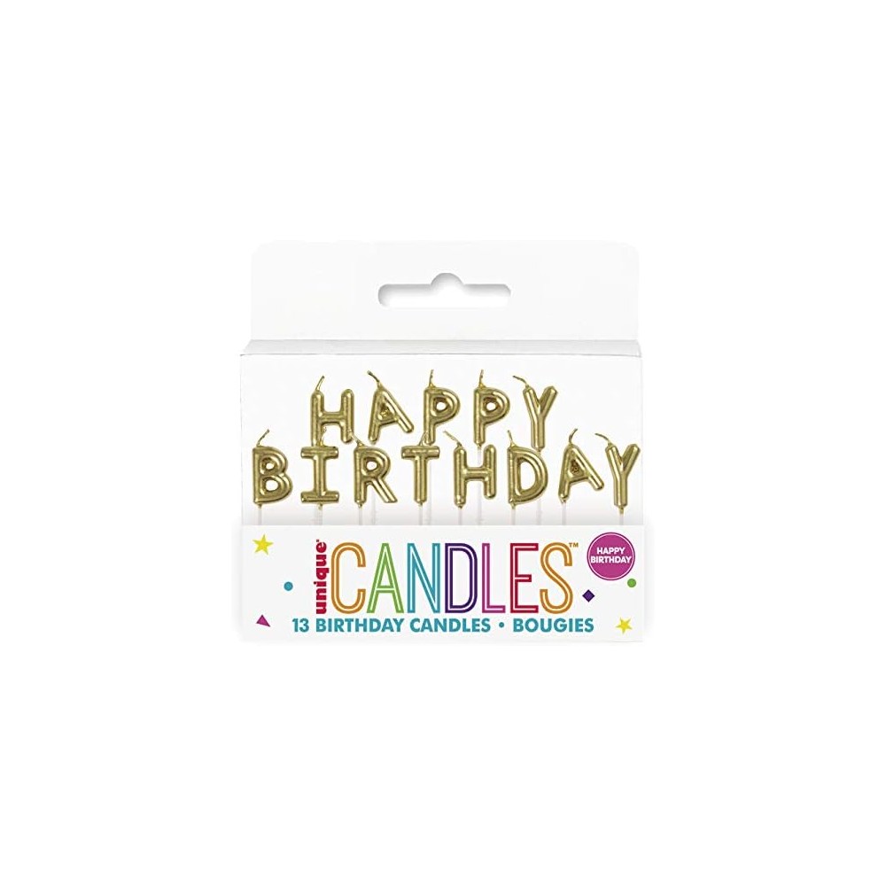Festeggia un compleanno molto speciale con queste candele di compleanno "Happy Birthday". Perfette per realizzare quel magico desiderio di compleanno, queste candele per torta di compleanno presentano 13 candele dorate individuali, che insieme compongono la scritta "Happy Birthday". Usali per abbellire istantaneamente la tua torta celebrativa, che si tratti di una tradizionale torta di compleanno o di un lotto di cupcakes.