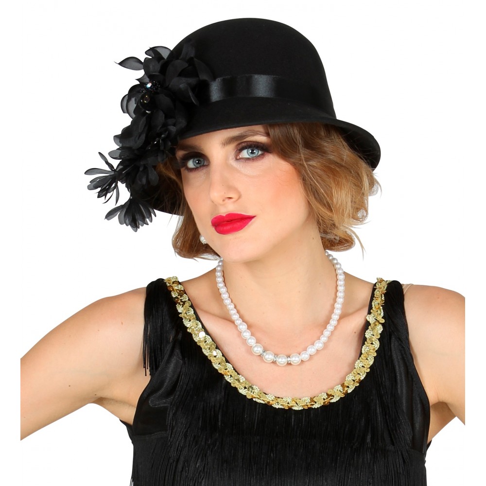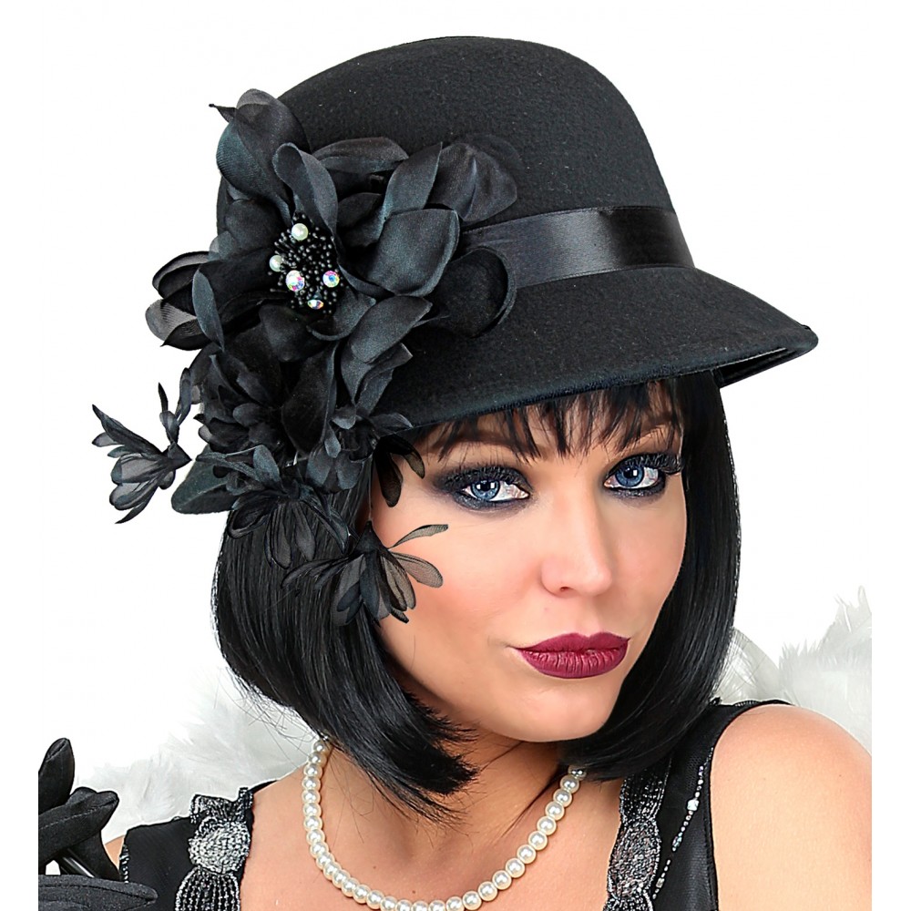 Cappello Nero Anni 20 Ruggenti, Taglia Unica