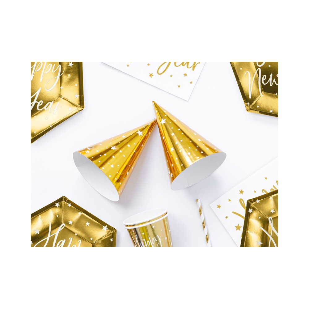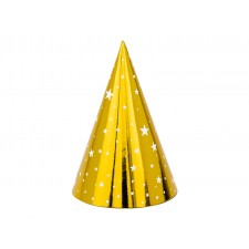 Cappellini Cono oro metal in cartoncino con stelle bianche.cf 6 pezzi