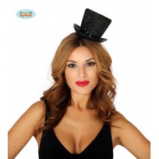Mini Cappello Nero da Donna con Glitter per Carnevale e per feste