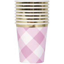 Bicchieri di Carta Quadri Rosa 266 ml - Nascita e Compleanno - Cf. 8