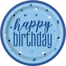 Piatti di Carta "Happy Birthday", 23 cm - Blu e Azzurro - Cf. 8