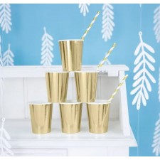 Ottima idea quella di allestire la propria tavola con questi bicchieri dorati in cartoncino, l'effetto riscontrato sarà sicuramente efficace in vista di un party tra amici. Ottima l'idea di coordinare i bicchieri al resto della mise en place, nel giorno della celebrazione dei 50 anni di Matrimonio dei propri genitori o famigliari, le Nozze d'Oro. Perfetta soluzione anche per addobbare la tavola per quanto riguarda la cena di Capodanno ma anche efficace in vista di una semplice festa all'insegna del colore oro.