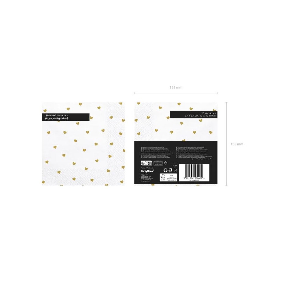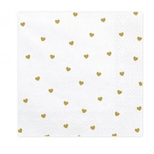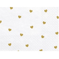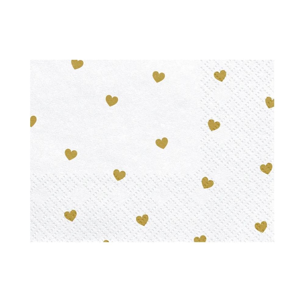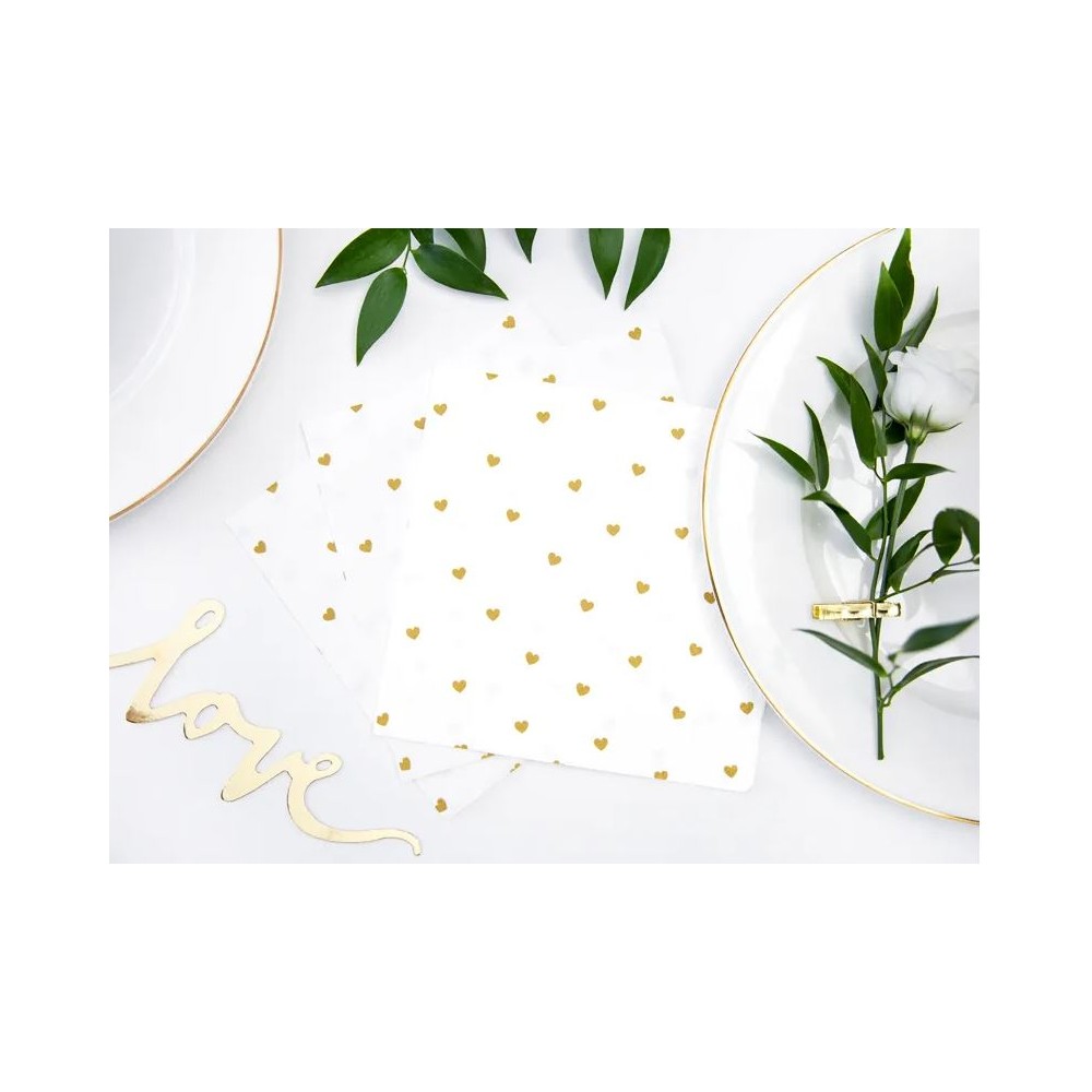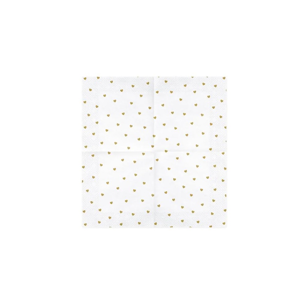Tovaglioli bianchi con cuori oro anniversario nozze oro, 50 anniCf da 20 pezzi