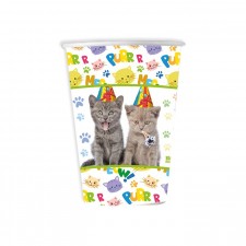 Bicchieri in cartoncino con gattini, gatti in festa, Misura 250 cc, Cf da 8 pezzi