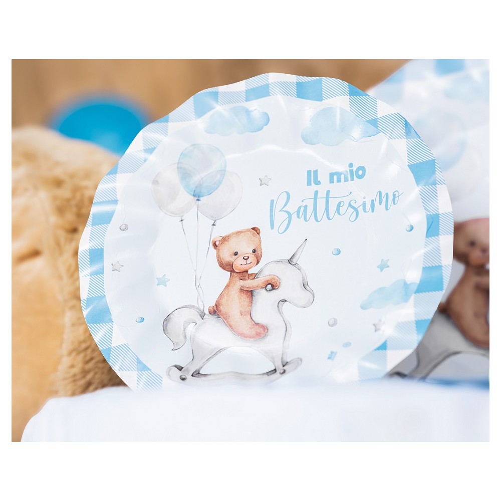 Piatti Battesimo Teddy Bear Celeste Ø 20 cm, Cf. 8