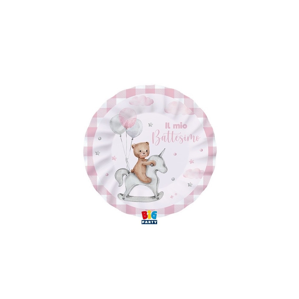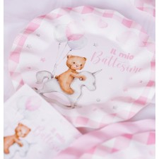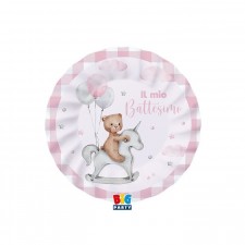 Piatti Battesimo Teddy Bear Rosa Ø 20 cm, Cf. 8