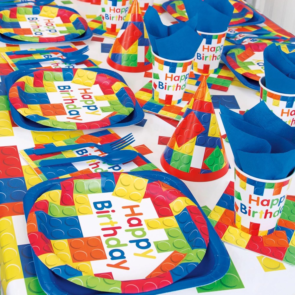 Servi ai piccoli costruttori tutti i tipi di dolcetti con questi piatti per feste di compleanno ecologici con mattoncini. Con il loro design giocoso di mattoncini luminosi e colorati, questi piatti di carta usa e getta costituiranno un'aggiunta affascinante alla festa di compleanno a tema mattoncini lego da costruzione di qualsiasi bambino. Usali per distribuire fette di torta dopo che l'ospite d'onore ha spento le candeline, oppure tienili sul tavolo del buffet affinché i bambini possano aiutarsi. Poiché questi piatti sono al 100% privi di plastica, sono anche migliori per l'ambiente!