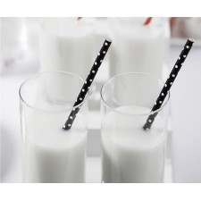 Queste cannucce nere con pois bianchi sono ideali per dare quel tocco in più per la tua festa di compleanno.
