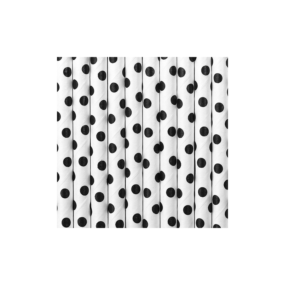 Cannuccie in Cartoncino Bianche con Pois Neri per FesteCf da 10 pezzi