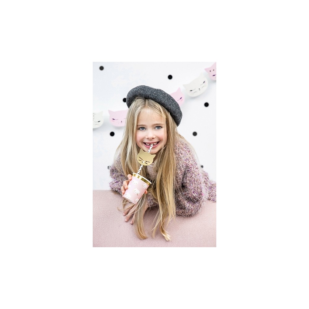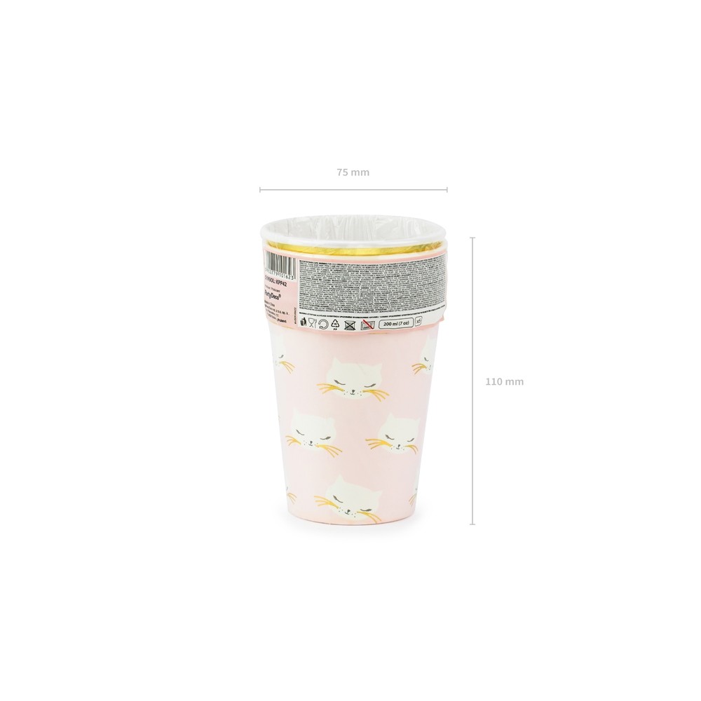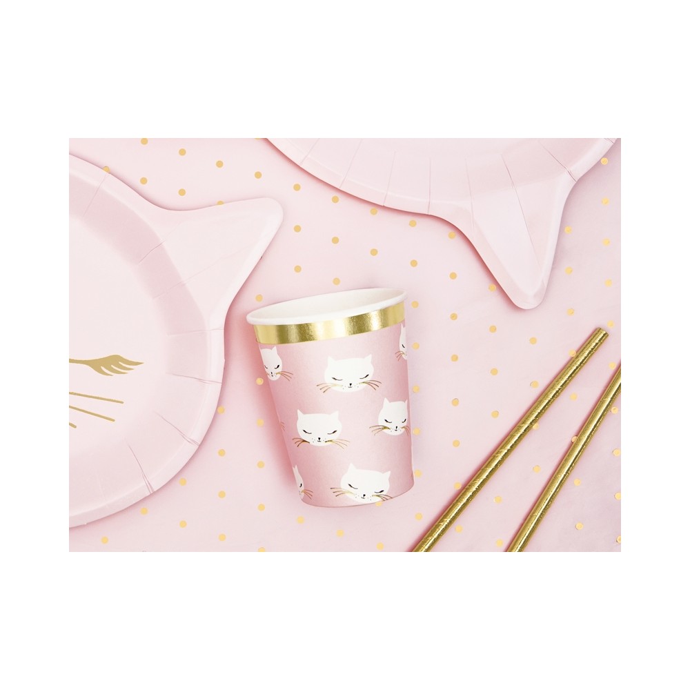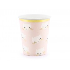 Bicchieri Cartoncino Tema Gatti con Bordo Oro per Compleanno Bambinecf da 6 pezzimisura 220 ml