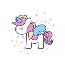 Il soggetto di questa cialda è un bellissimo unicorno bianco con la criniera e con la coda multicolorate circondato da un diverse forme di vario colore che scendono a cascata intorno a questa figura; questo animale è molto popolare nelle mitologie nordiche ed ha attorno a sé un alone di fantasia e magia.