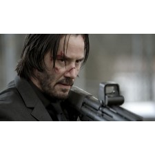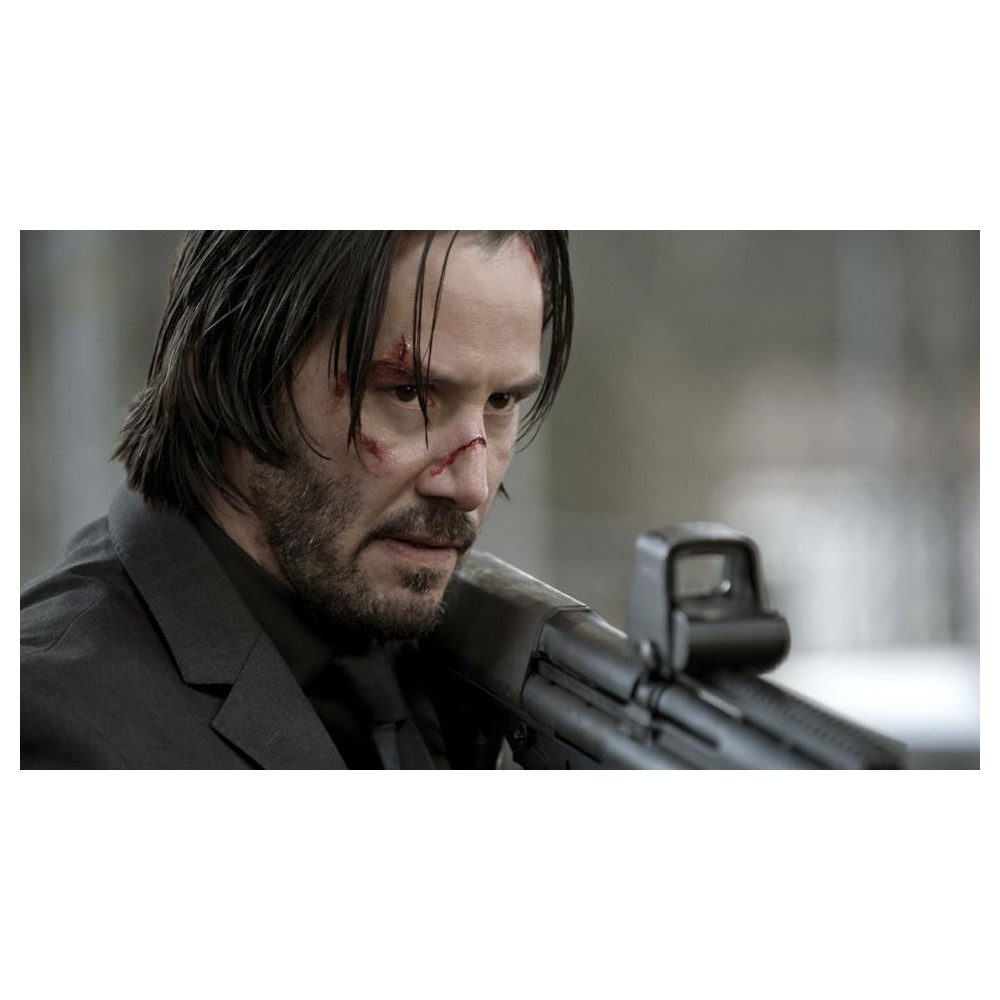 Il soggetto di questa cialda è lo spietato killer John Wick che in questa scena imbraccia un fucile con cui sta attaccando gli altri assassini assoldati per farlo fuori.