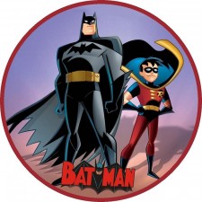 Cialda in Ostia di Batman & Robin per Decorazione di Torte per Compleanni e per Feste a Tema