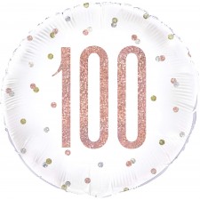 Palloncino Foil "100", 46 cm - Oro Rosa - Compleanno - Feste ed Eventi