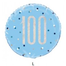 Palloncino Foil "100", 46 cm - Argento e Blu - Compleanno - Feste ed Eventi