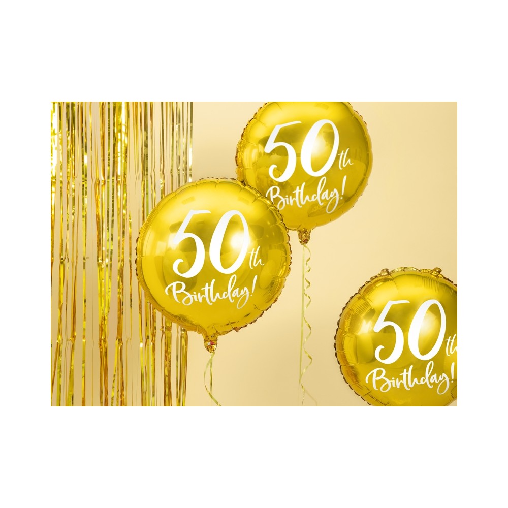 Un elegantissimo foil balloon dorato con scritta "50th Birthday!", la decorazione ideale per festeggiare il 50° compleanno! Si può gonfiare sia ad aria (tramite l'utilizzo di una pompetta) che ad elio.
