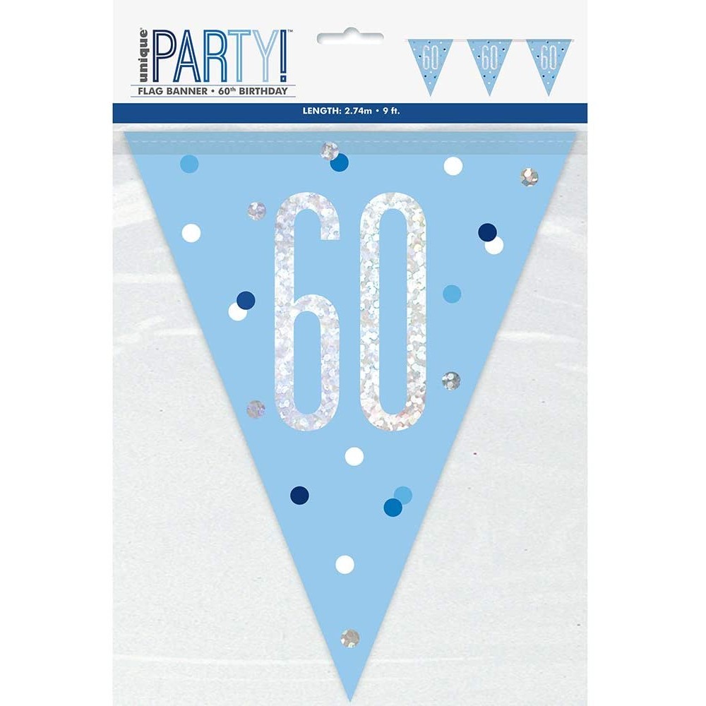 Striscione "60° Compleanno" 2,7 m Argento e Blu per Compleanno