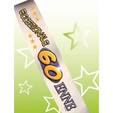 Ottimo accessorio utilizzabile in vista di una festa del sessantesimo compleanno, l'articolo infatti, si presenta come fascia premio da indossare sotto spalla, presentata con la scritta "Eccezionale 60 enne", utile nel caso si decida di celebrare la festa in mezzo alla folla e utilizzare il gadget umoristico come riconoscimento del festeggiato tra tutti i presenti.