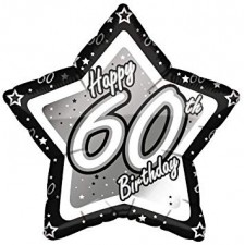 Palloncino in Foil a forma di stella per il compleanno dei 60 anni. 45cm, nero e argento