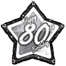 Palloncino in Foil a forma di stella per il compleanno dei 80 anni. 45 cm, nero e argento