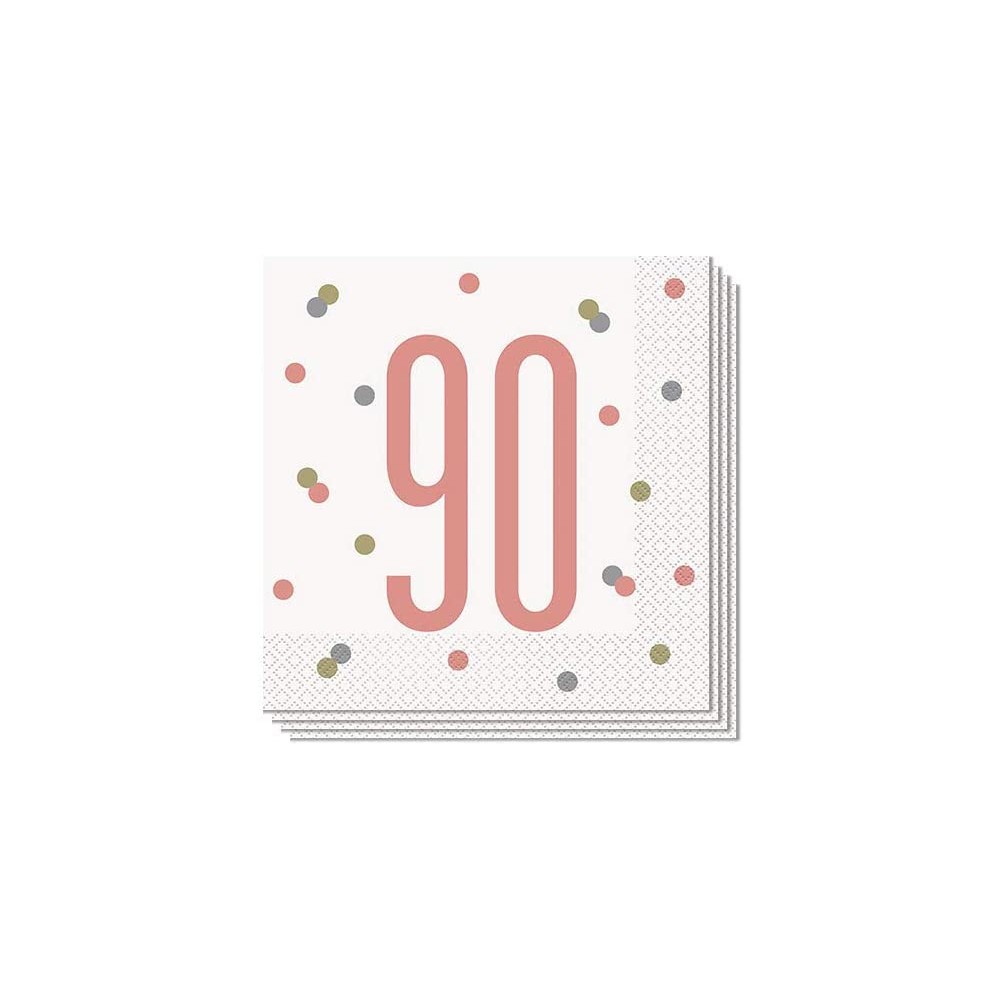 Tovaglioli di Carta "90 Anni" Oro Rosa 16,5 cm x 16,5 cm - Cf. 16