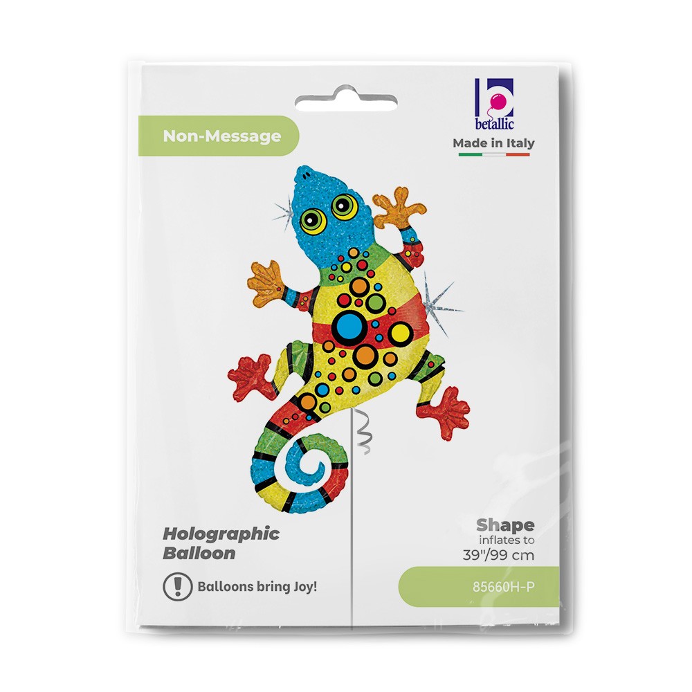 Questo foil balloon sagomato geco, gecko, rettile è perfetto per le feste a tema animali, decorando l' ambiente e rendendolo unico. Il palloncino perfetto per addobbare e decorare la tua di compleanno.