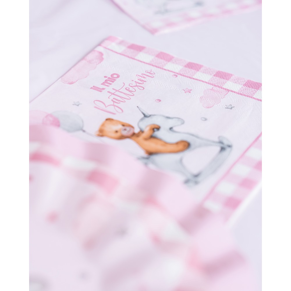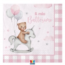 Tovaglioli 33 x 33 cm Battesimo Teddy Bear Rosa, Cf. 20