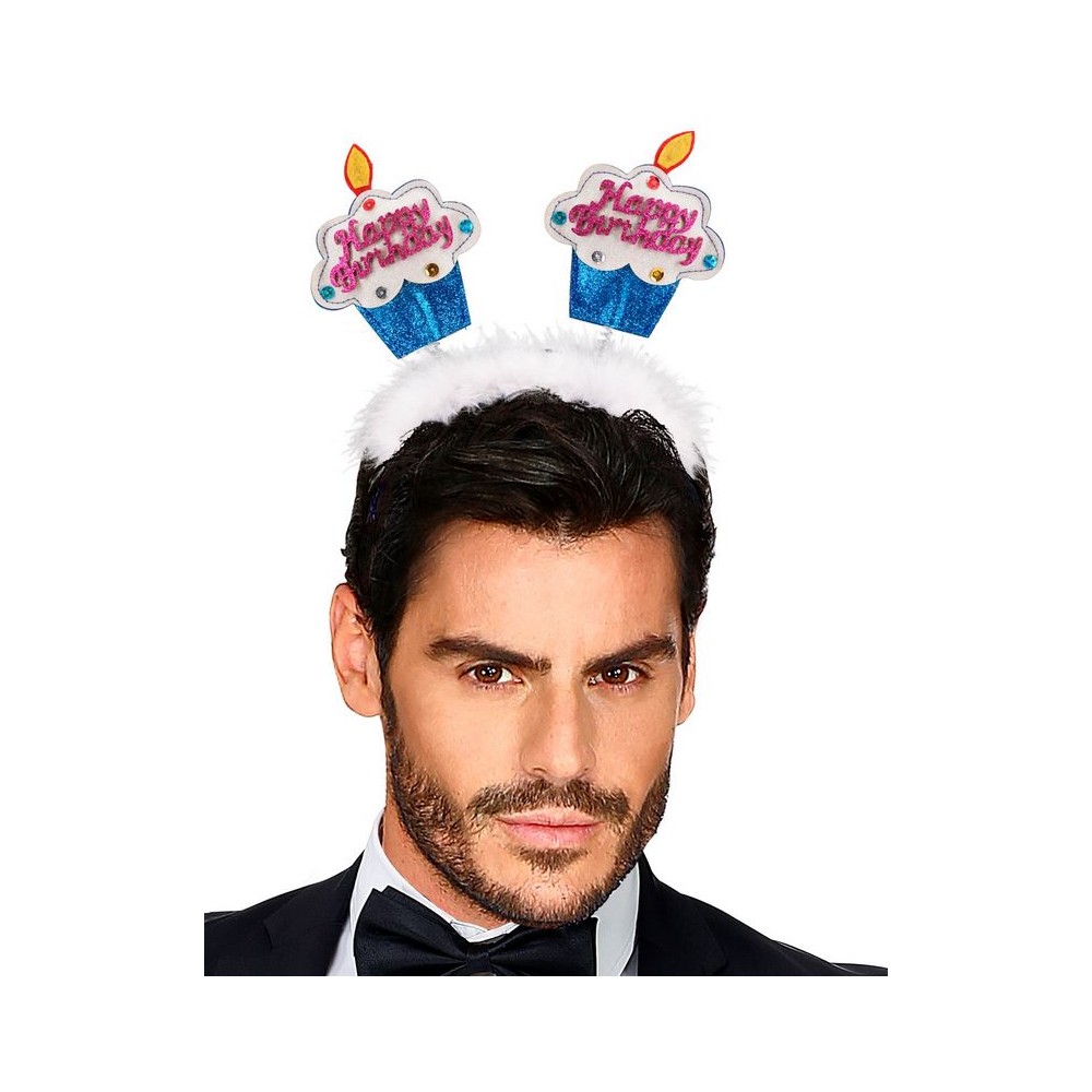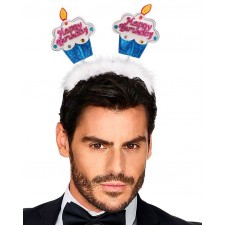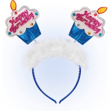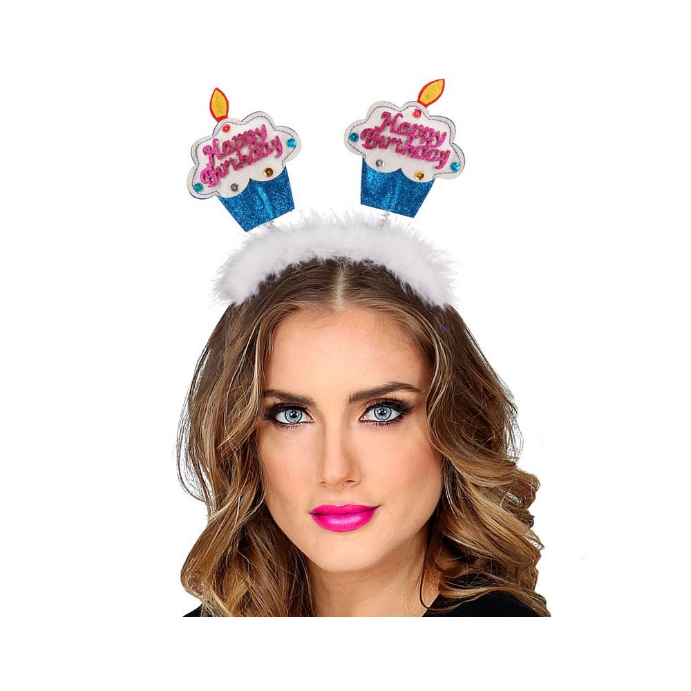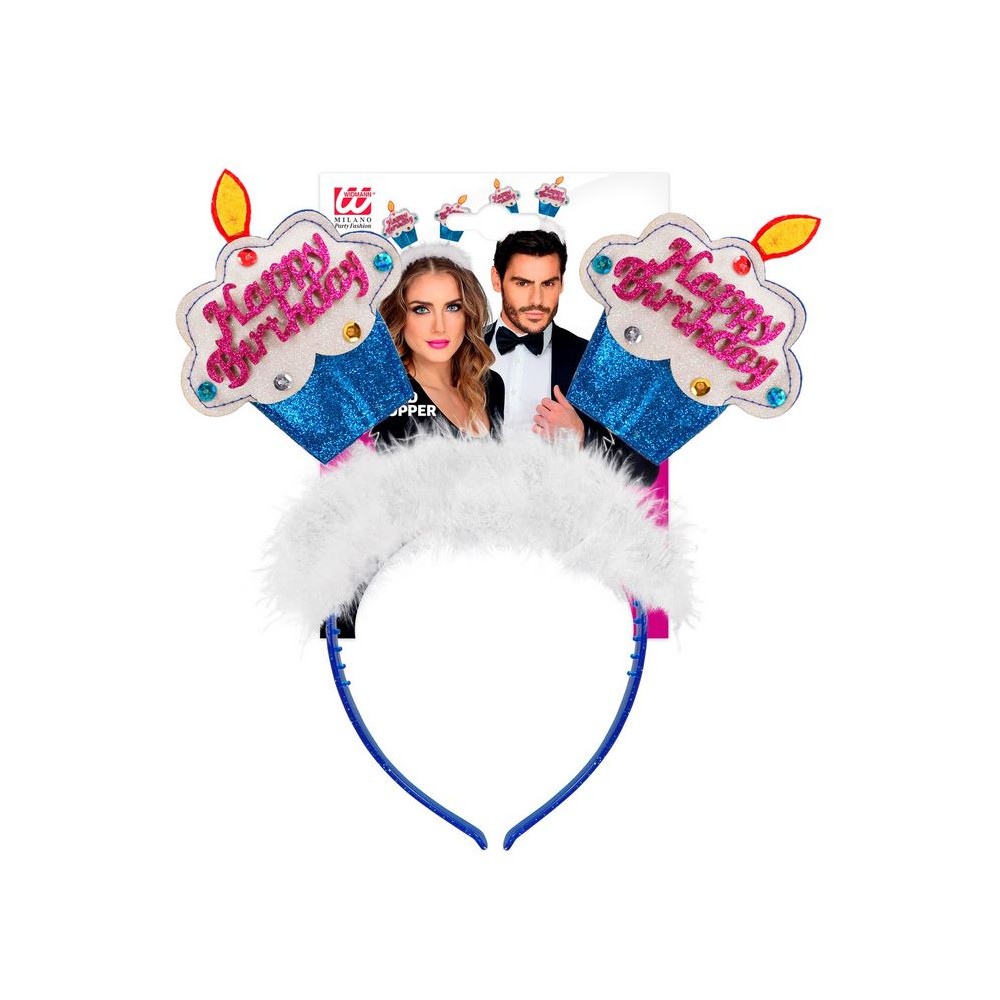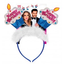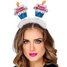 Cerchietto con antenne torta compleanno happy birthday, colore blu